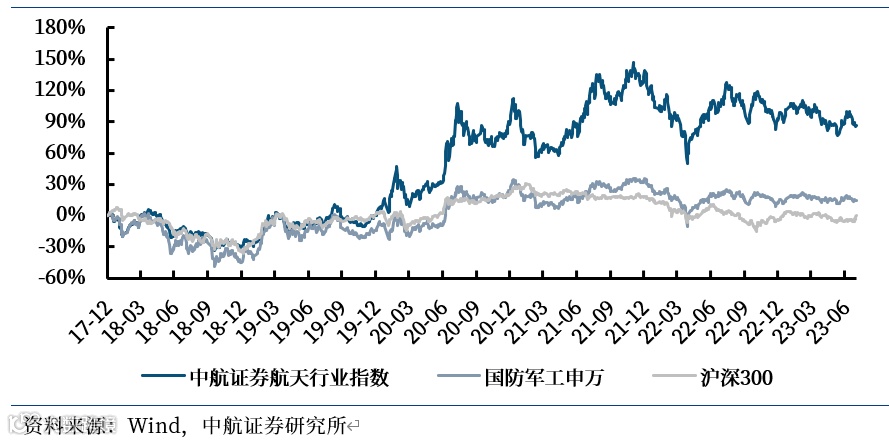 ① 中航证券航天行业指数(-5.12%),跑输军工(申万)行业3.45个百分点;