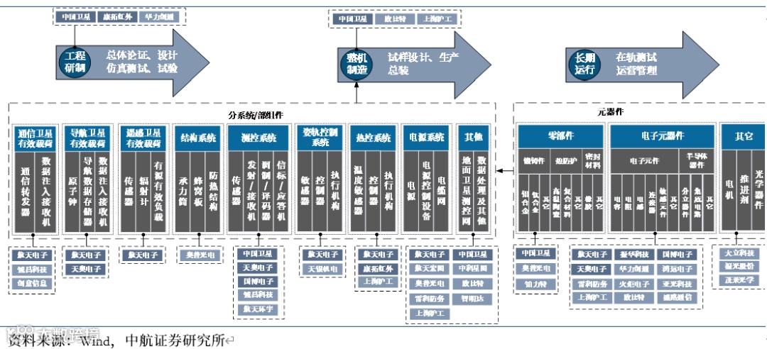 通信及遥感小卫星中有效载荷、控制系统、电源系统以及测控系统配套企业中,关注已经具有低成本及产业化能力的企业,或具有较高技术水平(毛利率较高),正处于产业化过程中的企业。