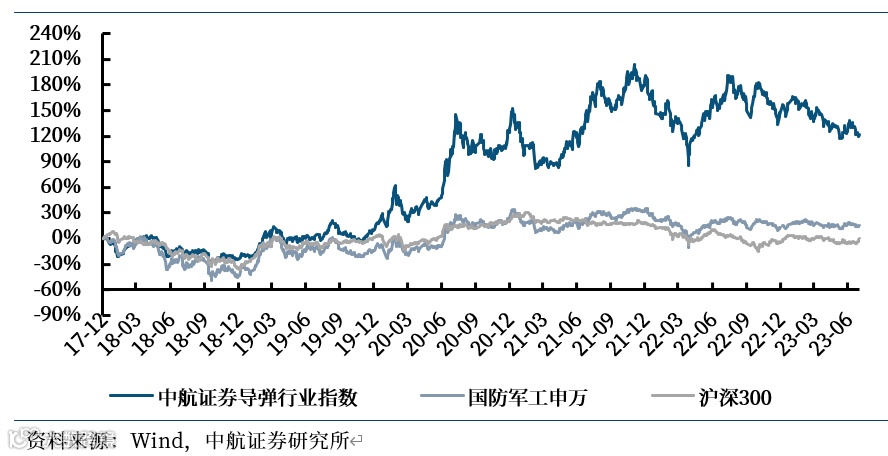 ② 中航证券导弹行业指数(-7.90%),跑输军工(申万)行业6.23个百分点;