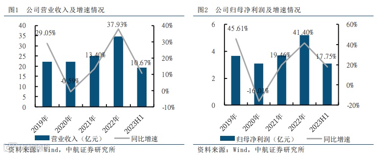 2023H1公司营收(19.21亿元,+10.67%)、归母净利润(3.09亿元,+17.75%)创新高,主要系报告期内公司积极开展技术研发和市场开拓,稳妥保障产品生产和供应链安全,使得主营业务收入增加所致,毛利率(31.56%,+0.17pcts)及净利率(16.06%,+0.96pcts)同比小幅增长,在公司完成新厂区搬迁,折旧摊销费用(0.69亿元,+75.28%)同比大幅增加的情况下,公司利润率逆势增长,我们认为是公司依靠核心竞争力采取费用管控措施,取得了明显成效。23Q2实现营收(12.24亿元,同比+8.17%,环比+75.47%),归母净利润(1.93亿元,同比+19.12%,环比+66.34%),毛利率(31.46%,同比+0.26pcts,环比-0.30pcts),净利率(15.75%,同比+1.45pcts,环比-0.86pcts),总体看23Q2营收业绩同比环比均有提升,并且营收、净利润均创下单季度新高。分业务来看: