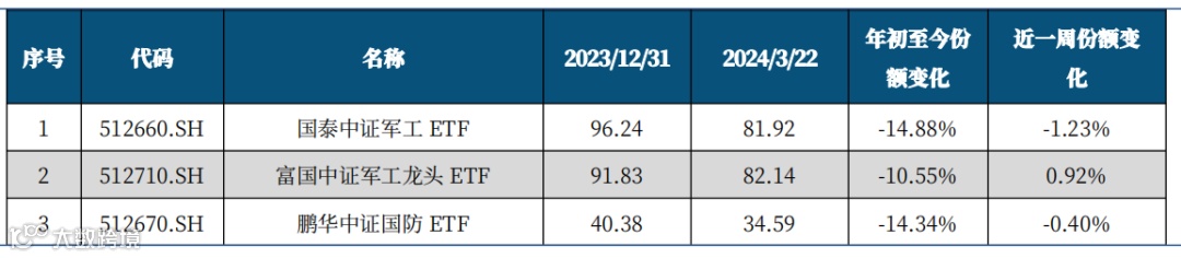 图12 近期主要军工ETF基金份额变化(单位:亿份)