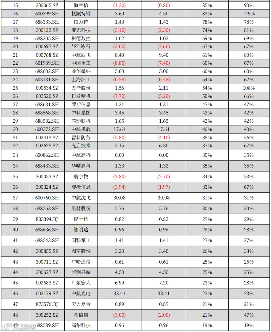 ② 部分军品低成本发展趋势下,可能会带来相关企业毛利率的波动;