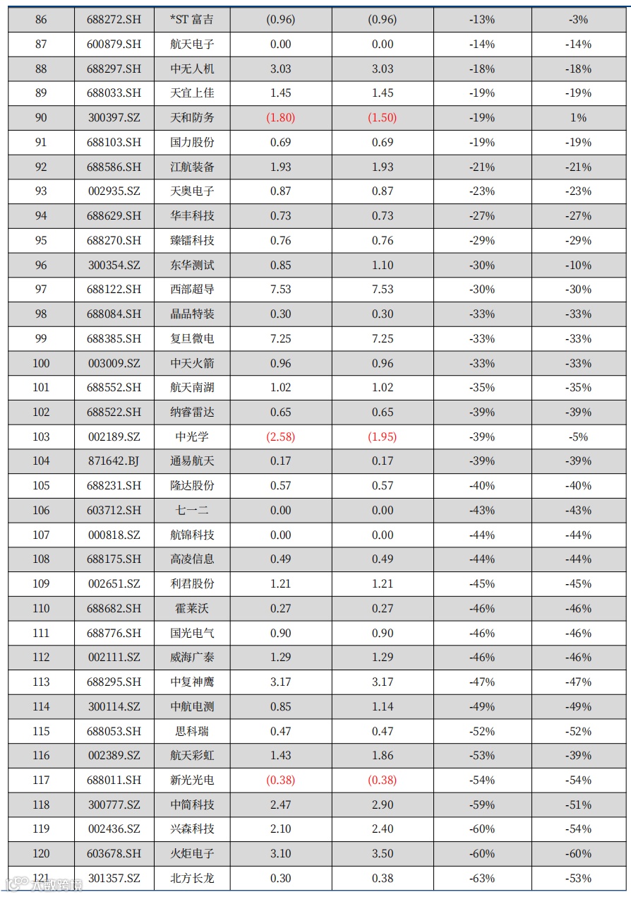 ① 短期反弹幅度较大,主机厂等权重个股相对落后不少,说明市场对于军工行业需求变化尚需逐步确认;