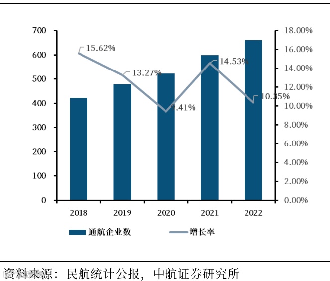 图4 中国在册通航企业数量(单位:家)