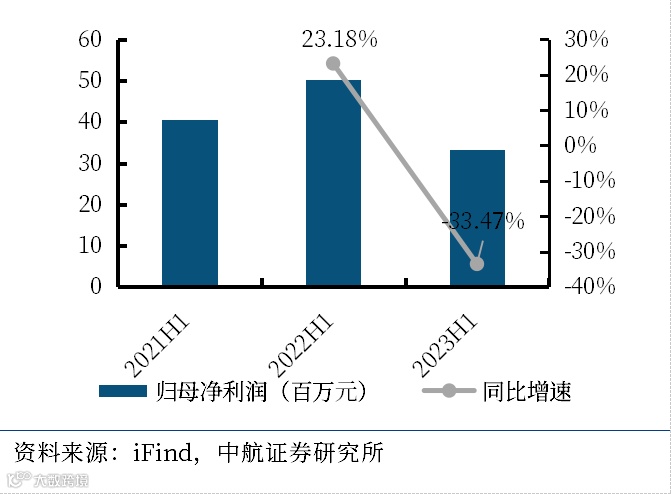 图2 公司中报归母净利润及增速(单位:百万元;%)