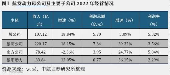 黎阳公司主要产品为三代中等推力航空发动机等产品,2022年营业收入33.84亿元(+12.05%),利润总额0.77亿元(+36.15%)。2022年,黎阳公司研发费用2.90亿元,同比增长81.43%。