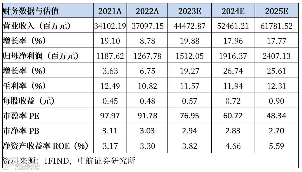 我们预计公司2023-2025年的营业收入分别444.73亿元、524.61亿元和617.81亿元,归母净利润分别为15.12亿元、19.16亿元及24.07亿元,EPS分别为0.57元、0.72元、0.90元,我们维持买入评级。