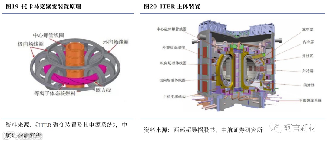 公司代表我国完成了ITER项目的超导线材交付任务,帮助实现了我国超导材料产业化并跻身国际先进行列。ITER(国际热核聚变实验堆计划)是目前全球规模最大、影响最深远的国际科研合作项目之一,项目的工作原理是利用强磁场对等离子体进行磁约束,模拟太阳的核聚变反应产生能量并实现可控利用,俗称“人造太阳”,这为人类解决能源问题提供了可能。为了在地球上实现受控热核聚变,其条件之一就是为聚变反应维持一亿度以上的高温等离子体环境,将参加反应的高温等离子体约束在一定范围内并保证充足的反应时间,ITER项目中所用到的装置是一个用磁约束来实现受控热核聚变的超导托卡马克装置(Tokamak),需要依赖超导磁体约束核聚变中的高温等离子体,来实现可自持的核反应。该装置需要采用NbTi和Nb3Sn超导线材制造超导磁体。在2003年1月中国政府决定参加ITER计划时,国内尚无企业具备NbTi和Nb3Sn超导线材生产能力,迫切需要开展超导线材产业化;2003年2月28日,超导有限正式成立,开始了ITER计划用NbTi和Nb3Sn线材的产业化。随着公司突破了NbTi和Nb3Sn线材产业化制备技术,根据ITER计划采购进度,2010-2011年公司的超导线材通过ITER组织的综合评价,并于2012年开始向ITER项目批量供货。我国承担了69%的NbTi超导线和7%的Nb3Sn超导线生产任务,全部由西部超导提供,目前公司已完成全部NbTi和Nb3Sn线材交付工作,产品性能在业界获得了高度肯定。公司未来核聚变领域用超导线材需求将主要来自于我国自主设计研制并联合国际合作开展的中国聚变工程实验堆(CFETR)项目,项目已在建设进行中,主要用以填补ITER和未来商业化运行的聚变堆之间的科学技术差距,实现连续大规模聚变能安全、稳定的工程可行性。