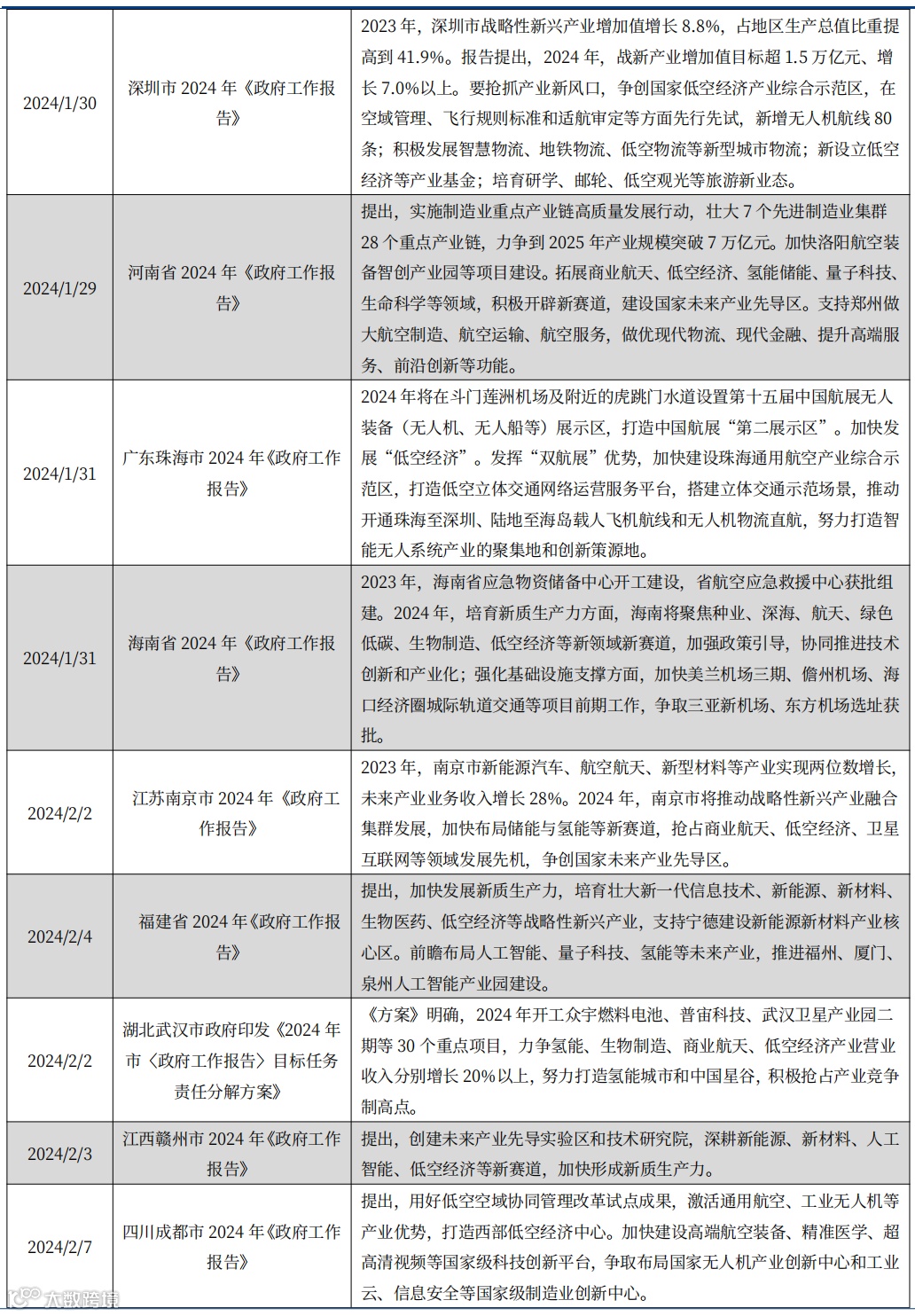 表61 地方政府工作报告“低空经济”相关内容梳理