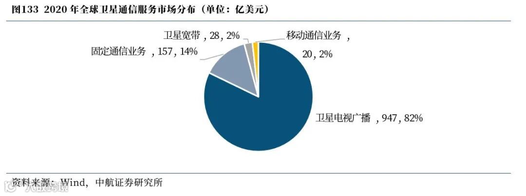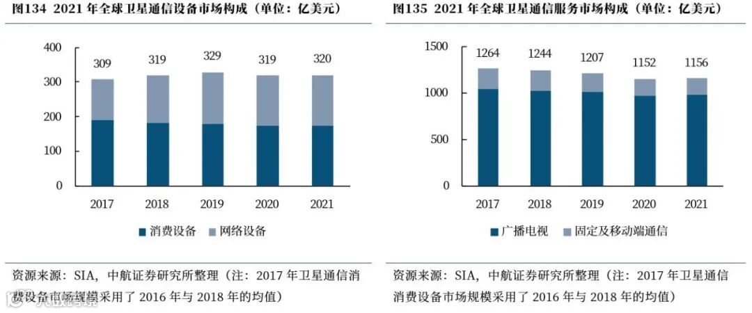 按照近年来美国卫星协会(SIA)的统计方式,全球卫星通信服务大众消费通信服务、卫星固定通信服务。