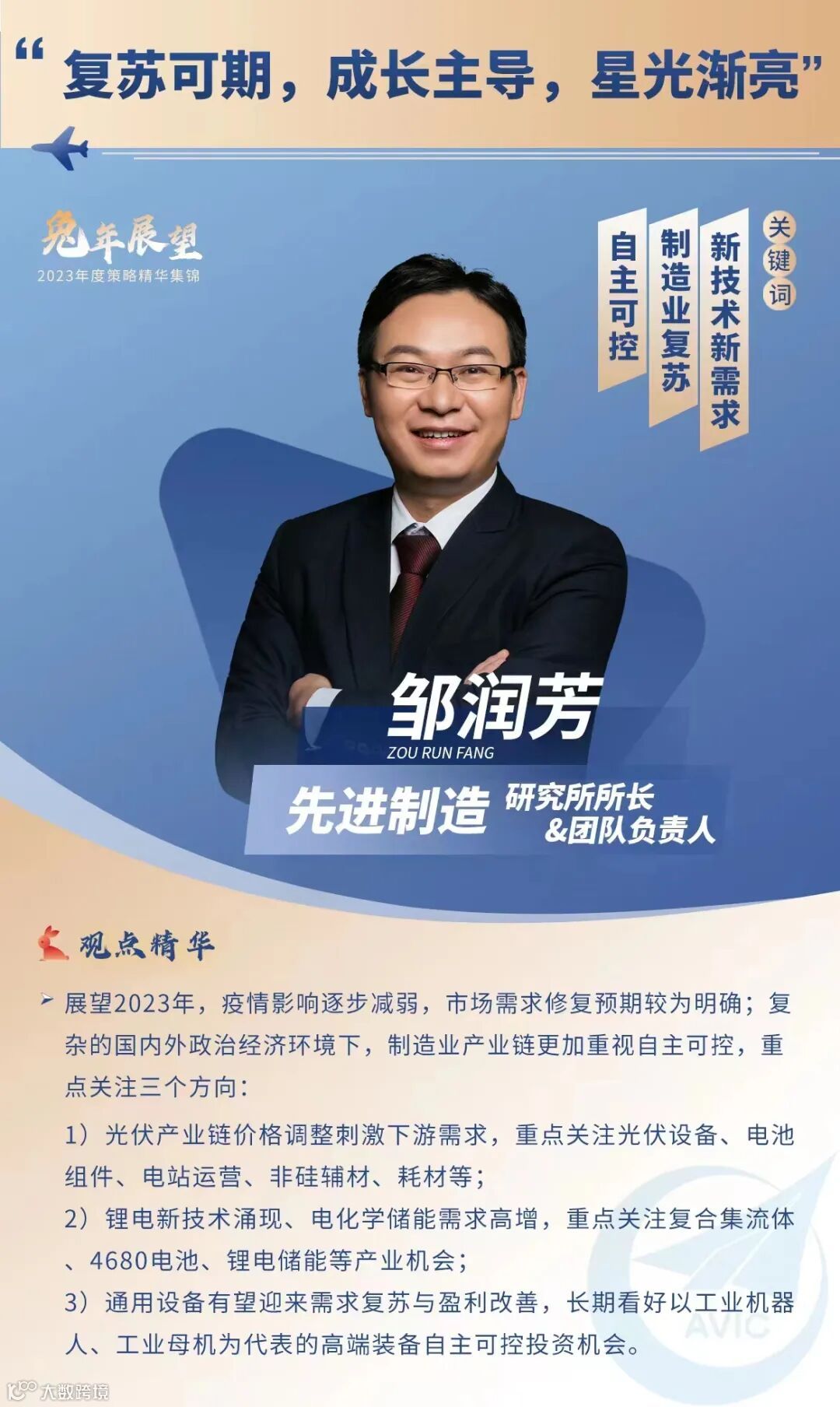 “谁无暴风劲雨时,守得云开见月明”,二十大胜利召开,美国加息渐进尾声,多项发展经济的政策出台,信心在恢复,产业在升级,这些变化将会很快传导到资本市场。我们欣喜地发现,2023年有着诸多难能可贵的确定性:确定性的估值低位、确定性的流动性改善、确定性的经济复苏...向光而行,我们认为2023年的资本市场是很值得期待的!