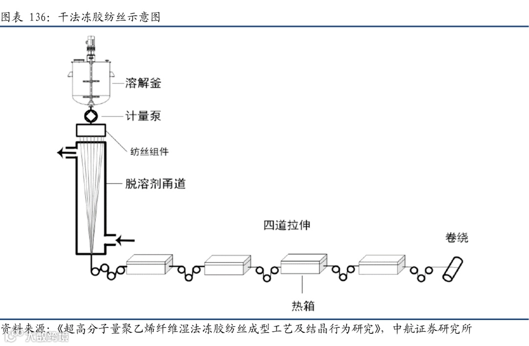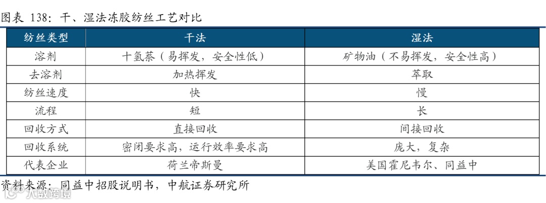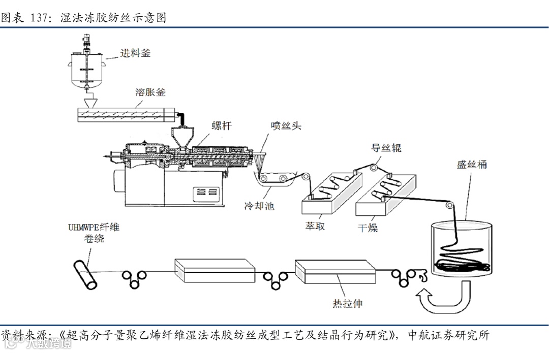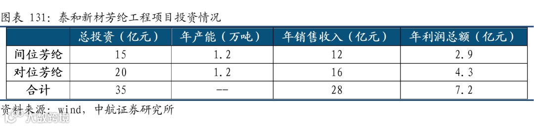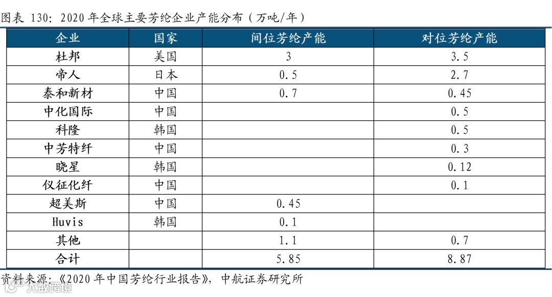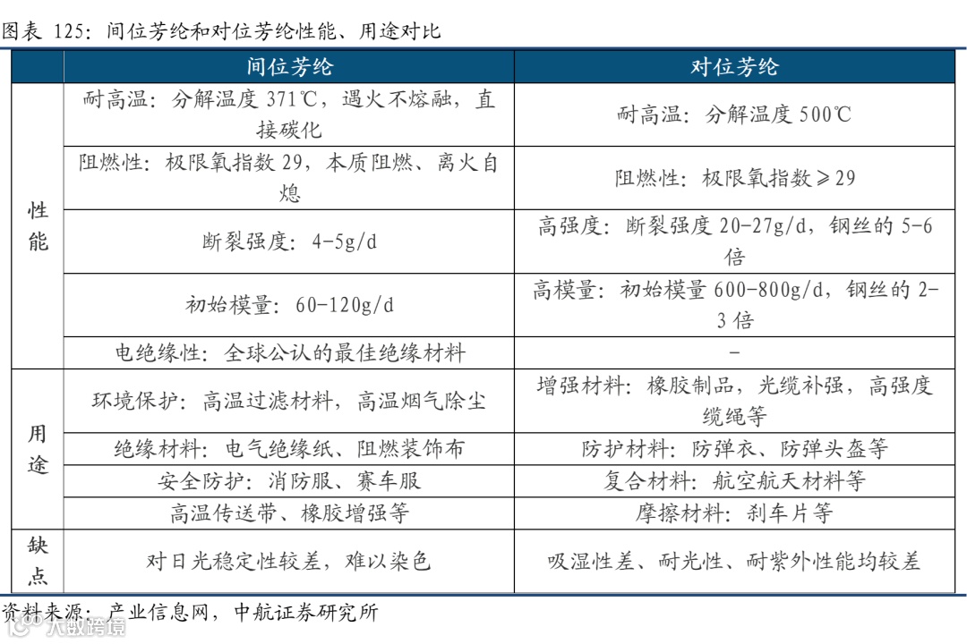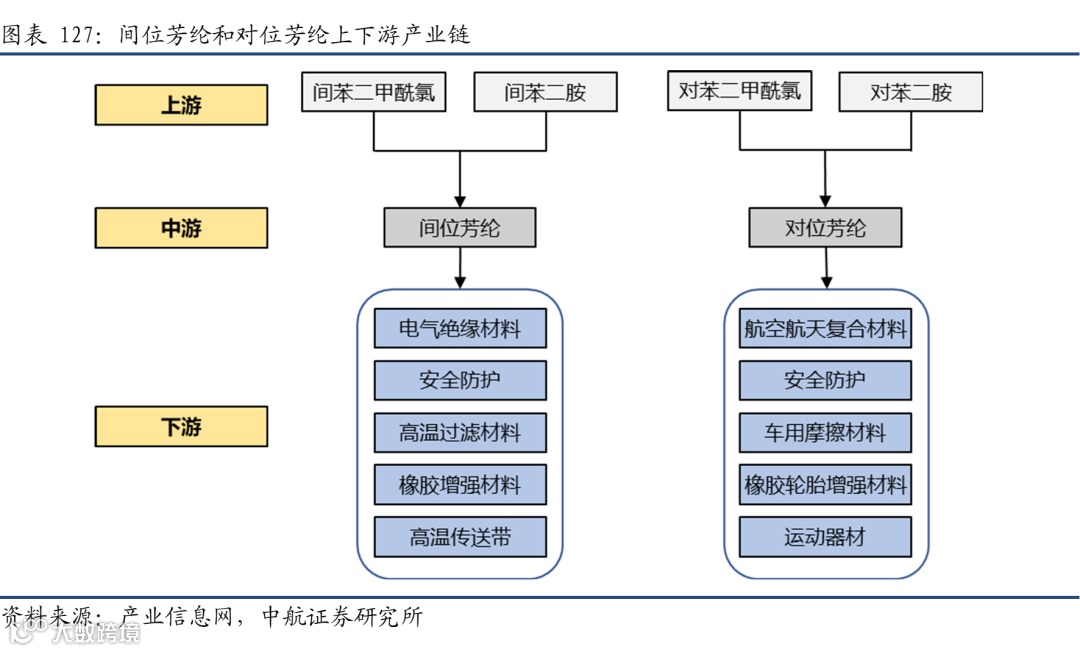 从产业链来看,两种芳纶的上游原材料以及工艺存在一定的差异,间位芳纶的上游合成材料主要是间苯二甲酰氯、和间苯二胺;对位芳纶主要是对苯二甲酰氯和对苯二胺。此外两者之间的聚合工艺也存在区别。