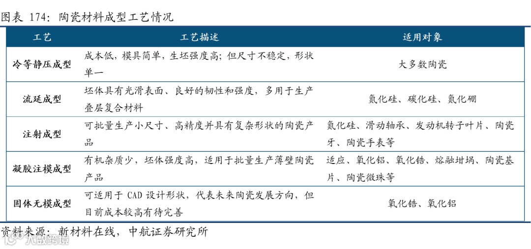 先进陶瓷成型工艺:陶瓷成型工艺种类繁多,成型过程中常常加入少量有机物作为胶黏剂提高坯体强度和便于塑型,而胶黏剂在烧结过程分解,容易留下气孔影响最终性能。