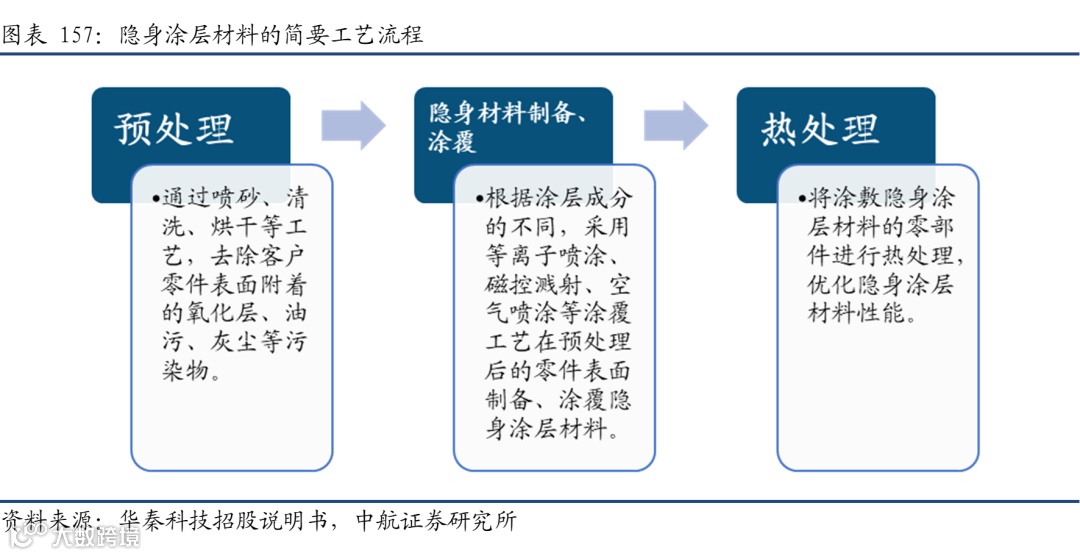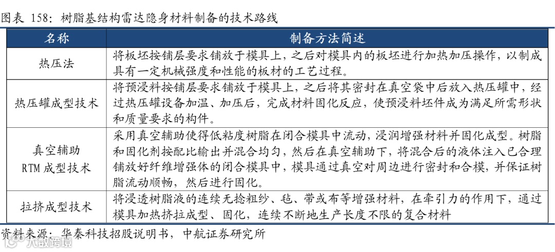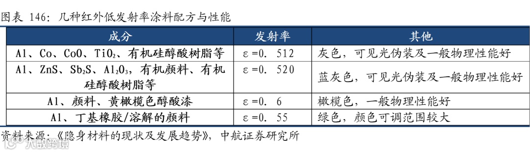 目前我国在隐身材料方面的技术已经达到了世界前列,但整体的商业化进程仍处于初期,随着新型武器装备的批产,将带动隐身材料需求应用,尤其是新型号装备的加速列装,隐身材料的单装占比有望不断提升,不断促进隐身材料公司业绩的快速增长。国内厂商重点关注华秦科技(688281)、光启技术(002625)。