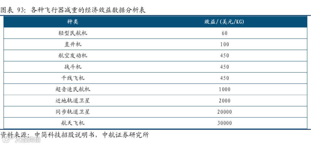1.1.1、航空领域:减重经济效益显著,得到广泛青睐