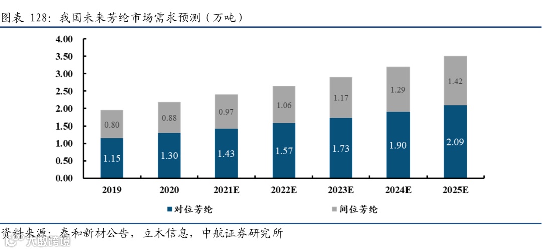 我们认为,随着芳纶在国防军工、安全环保等领域应用的不断扩大,国内芳纶市场需求将迎来快速增长。此外芳纶纤维的国产替代市场广阔,尤其是对位芳纶。那么在“十四五”期间航空航天装备快速发展的契机下,将充分利好国内实现高性能芳纶纤维技术、产业化突破的企业,国内厂商重点关注泰和新材(002254)。