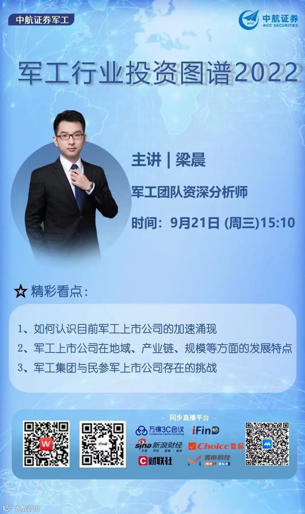 直播预告 | 9月21日(今天)15:10 军工行业投资图谱2022--线上解读