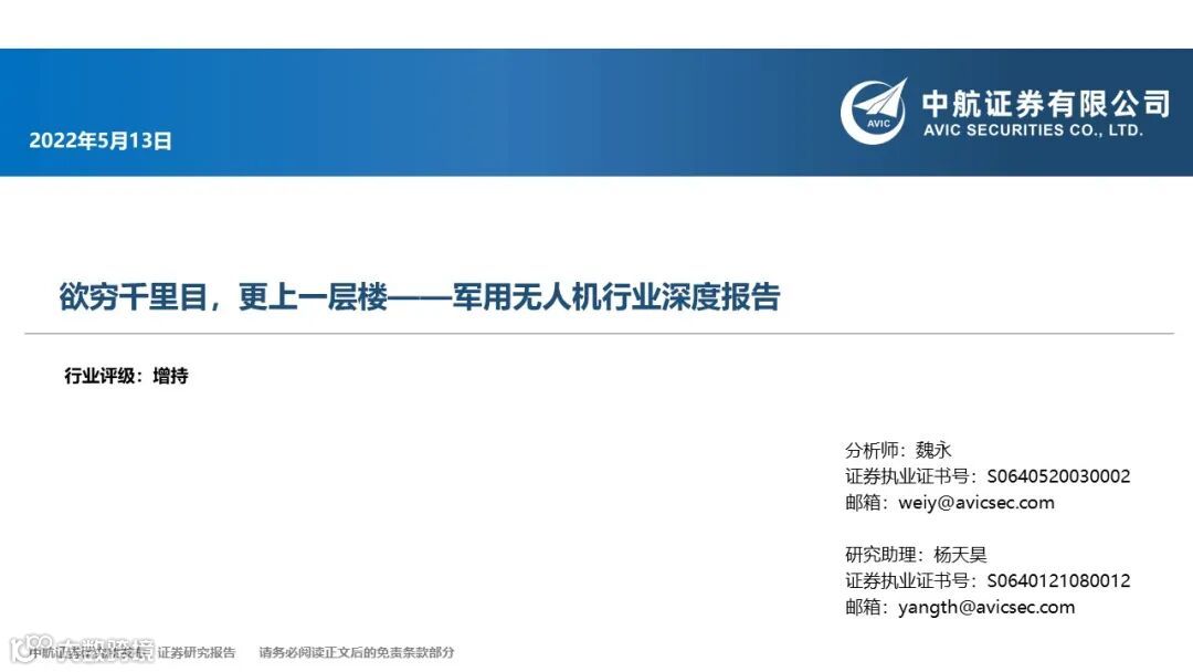 证券研究报告名称:【中航证券军工】欲穷千里目,更上一层楼——军用无人机行业深度报告