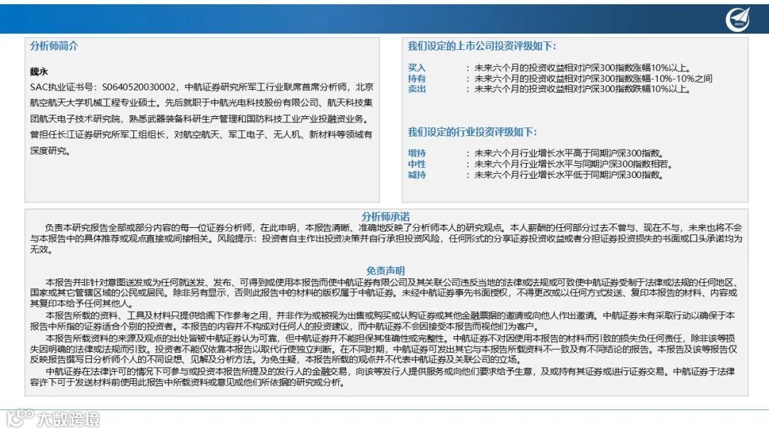 杨天昊(SAC执业证书号:S0640121080012),2021年8月加入中航证券,西北工业大学航天工程硕士,曾任某央企驻海外航空业务代表,从事航空及高端装备国际业务六年,关注航空航天装备及相关产业。