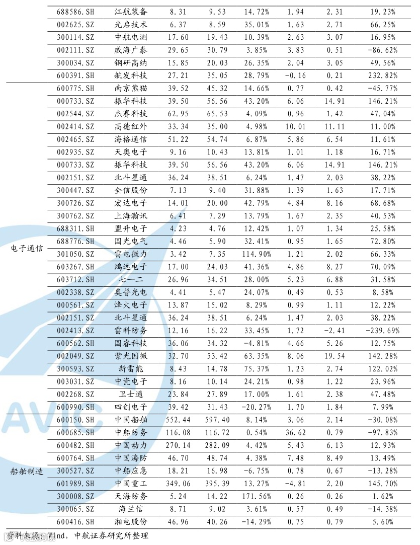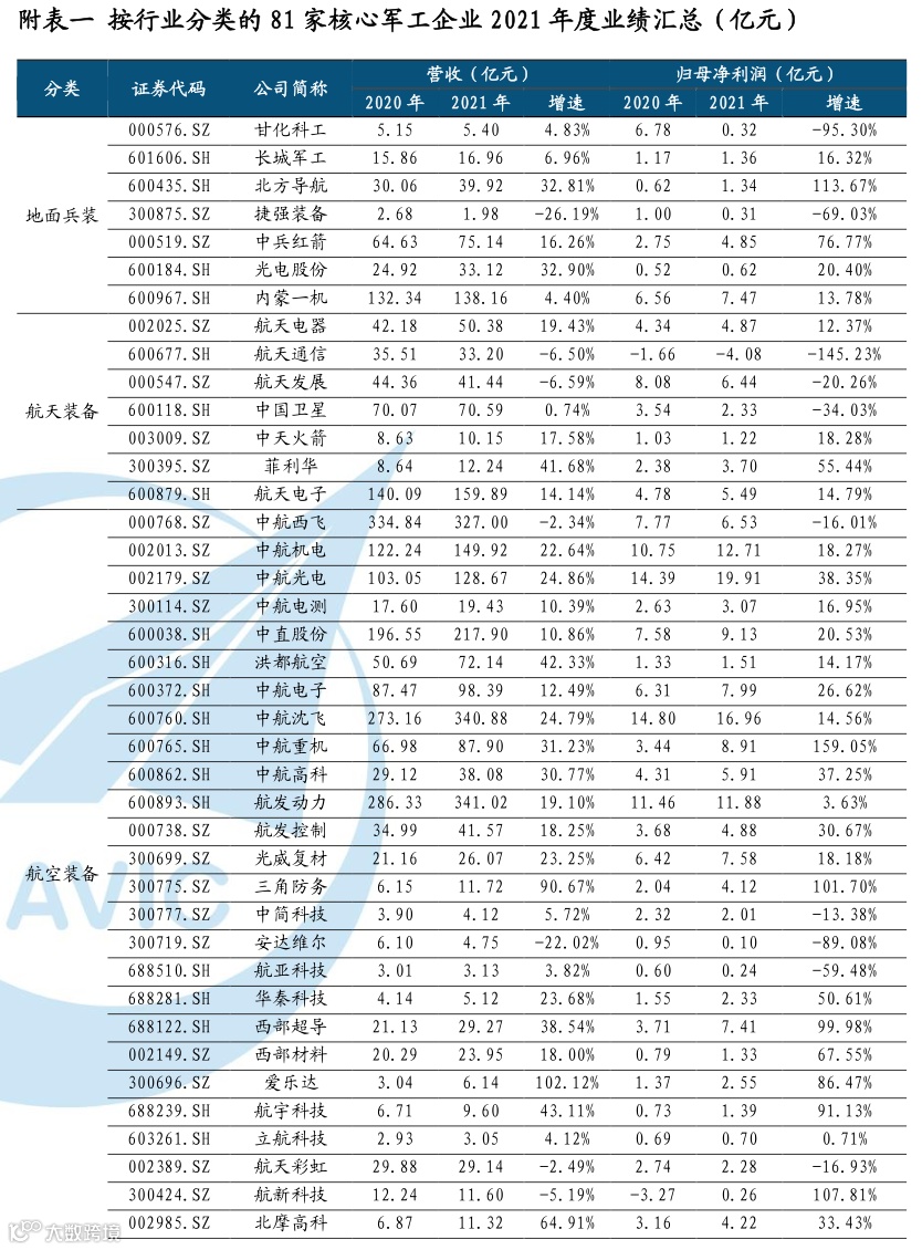 证券研究报告名称:火然泉达,日升月恒——军工产业链2021年财务数据分析