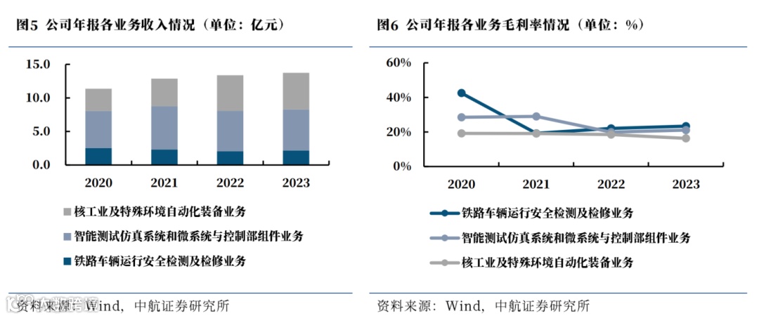 公司重点聚焦轨道交通、航空航天、核工业三大国家战略性行业,形成了铁路车辆运行安全检测及检修系统、智能测试仿真系统和微系统与控制部组件、核工业及特殊环境自动化装备三大业务板块的产业格局。