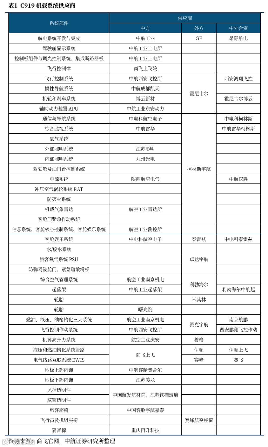 国产替代空间大,大飞机产业有望拉动民机航电系统发展。从全球的市场格局来看,航电产品由于涉及分系统和较多的部件产品,相应的配套商较多而系统集成商相对集中。国外航电设备主要供应商包括GE、Rockwell、Honeywell、Raytheon等。当前我国民机基本依赖于进口,航电系统基本也为进口品牌。以C919系列为代表的国产飞机产业的发展正在拉动国产航电系统的发展,民机航电系统国产替代空间大。