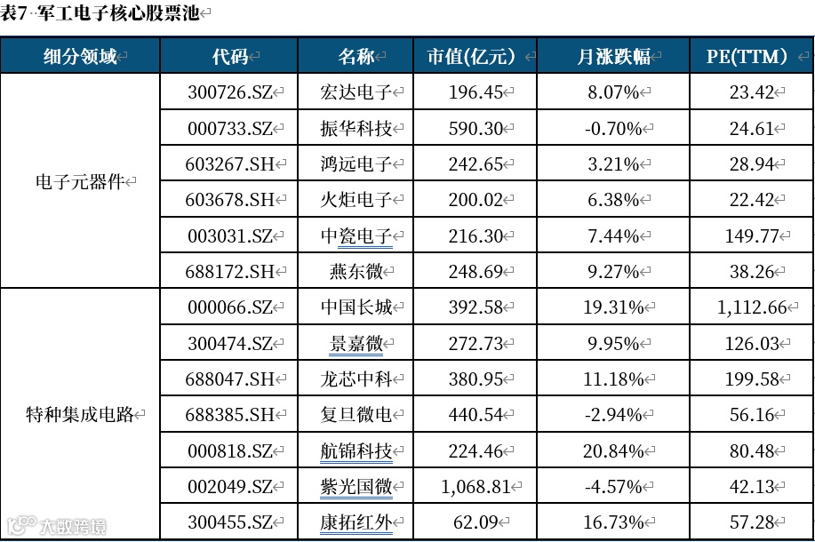 军工电子月度行情表现