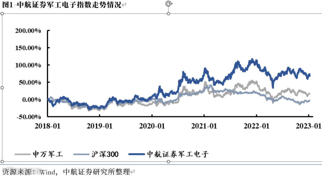 1月中航证券军工电子指数(+4.97%),军工(申万)指数(+6.45%),跑输行业1.48个百分点。