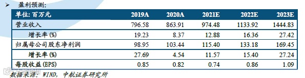 基于以上观点,我们预计公司2021-2023年的营业收入分别为9.74亿元、11.34亿元和14.45亿元,归母净利润分别为1.15亿元、1.33亿元及1.69亿元,EPS分别为0.74元、0.86元、1.09元,当前股价分别对应69倍、60倍及47倍PE。