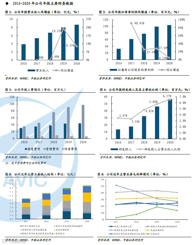 我们认为,民品方面,公司较早进入该领域,在人工影响天气火箭领域具有较深的技术积淀。由于增雨防雹火箭及配套设备的市场需求与和气候变化情况密不可分,而全球性、地区性气候变化均具有周期性,导致本行业呈现一定的周期性。但公司对外披露,公司的焰条人影产品已经收到一带一路沿线国家的订单,表明公司该业务在海外的拓展已经取得一定成果,有助于减少国内该行业周期性对公司增雨防雹火箭及配套设备业务造成的部分负面影响,该业务收入有望保持稳定快速的增长。军品方面,公司背靠航天科技集团第四研究院,是国内少数具有小型固体火箭总体研制能力的上市公司之一。而在2020年的亚阿冲突和美伊冲突中,精确制导装备的作战效果已经得到了验证,未来全球军贸市场中精确制导装备的贸易热度也有望得到进一步提升。在此背景下,尽管公司短期内军用小型固体火箭收入出现了波动,但从中长期来看,公司该业务收入有望恢复稳定快速的增长。