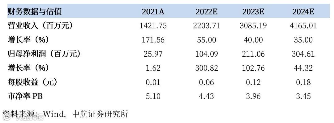 预计2022/2023/2024年实现营收22.03/30.85/41.65亿元,实现归母净利润1.04/2.11/3.04亿元,对应EPS 0.06/0.12/0.18元,P/B 4.43/3.96/3.45,维持“买入”评级。