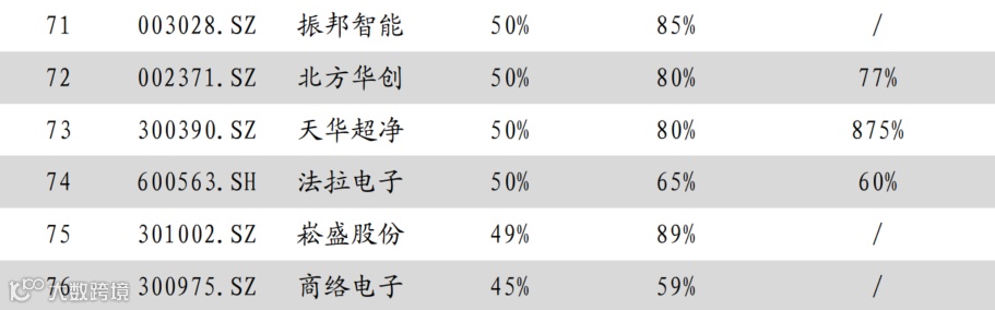 (1)设备:外部环境催化下,供应链本土化趋势加强,国产替代比例上升。