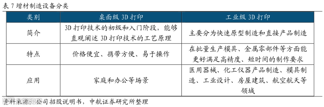 工业级3D打印设备占据主导。增材制造设备可分为桌面级打印机和工业级打印机。随着国外桌面级打印机相关专利保护到期,技术壁垒下降,国内桌面级打印机厂家数量急剧增长,新进企业增多,加大了国内桌面级增材制造市场的竞争程度。与桌面级打印机市场相比,工业级打印机技术壁垒高,资本投入大,一直以来发展较为缓慢,但当前工业级增材制造产业受到国家政策大力支持,整个市场目前已开始呈现快速增长形势。3D打印的核心专利大多被设备厂商掌握,因此在整个产业链中占据主导地位,这些设备生产厂商大多也提供打印服务业务。近年来,3D打印行业整合加剧,通过并购3D打印软件公司、材料公司、服务提供商等,设备生产企业转变为综合方案提供商,加强了对产业链的整体掌控能力。