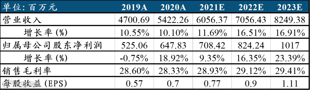 公司4月16日公告,2020营收54.22亿元(+10.10%),归母净利润6.48亿元(+18.92%),毛利率28.33%(-0.27pcts),净利率12.06%(+0.64pcts)。
