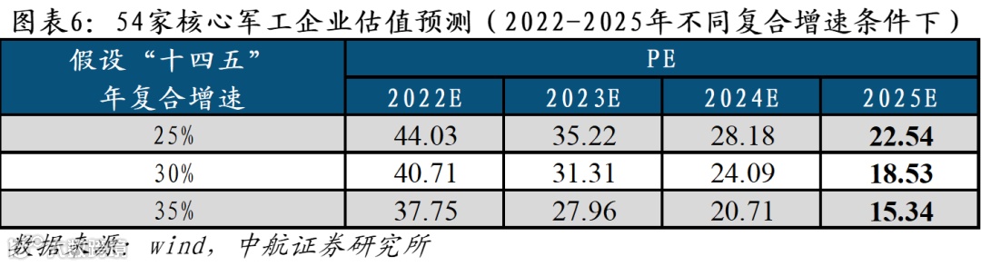 军工行业估值已经处于底部空间,截至2022年3月11日,国防军工(申万)指数PE(TTM)为57.37倍,位于过去八年的9.93%分位,核心军工公司的平均PE当前对应2023年的30倍左右,对应2025年的20倍左右,已经显得足够便宜。