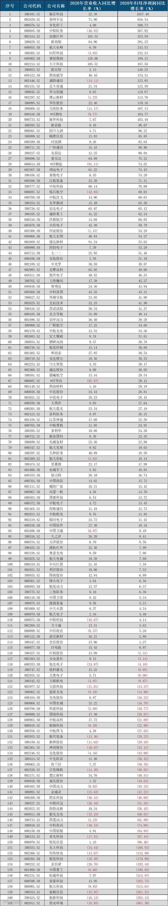 数据来源:Wind,中航证券研究所整理(数据截至2021/04/30,公司顺序按2020年归母净利润同比增长率(%)由大到小排列)