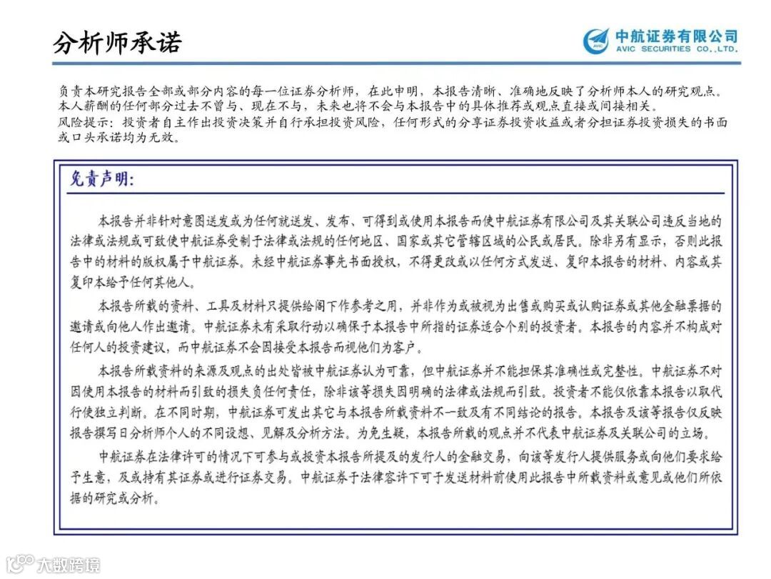 中航证券研究聚焦金融、军工,拥有20余人的全市场规模最大的军工研究团队,依托航空工业集团强大的军工央企股东背景,深度覆盖军工行业各个领域,紧密跟踪全球军工态势,全面服务一二级市场,并重点覆盖高端制造、计算机、电子、通信、传媒等新兴行业,兼顾农业、医药生物、休闲服务、食品饮料等行业。