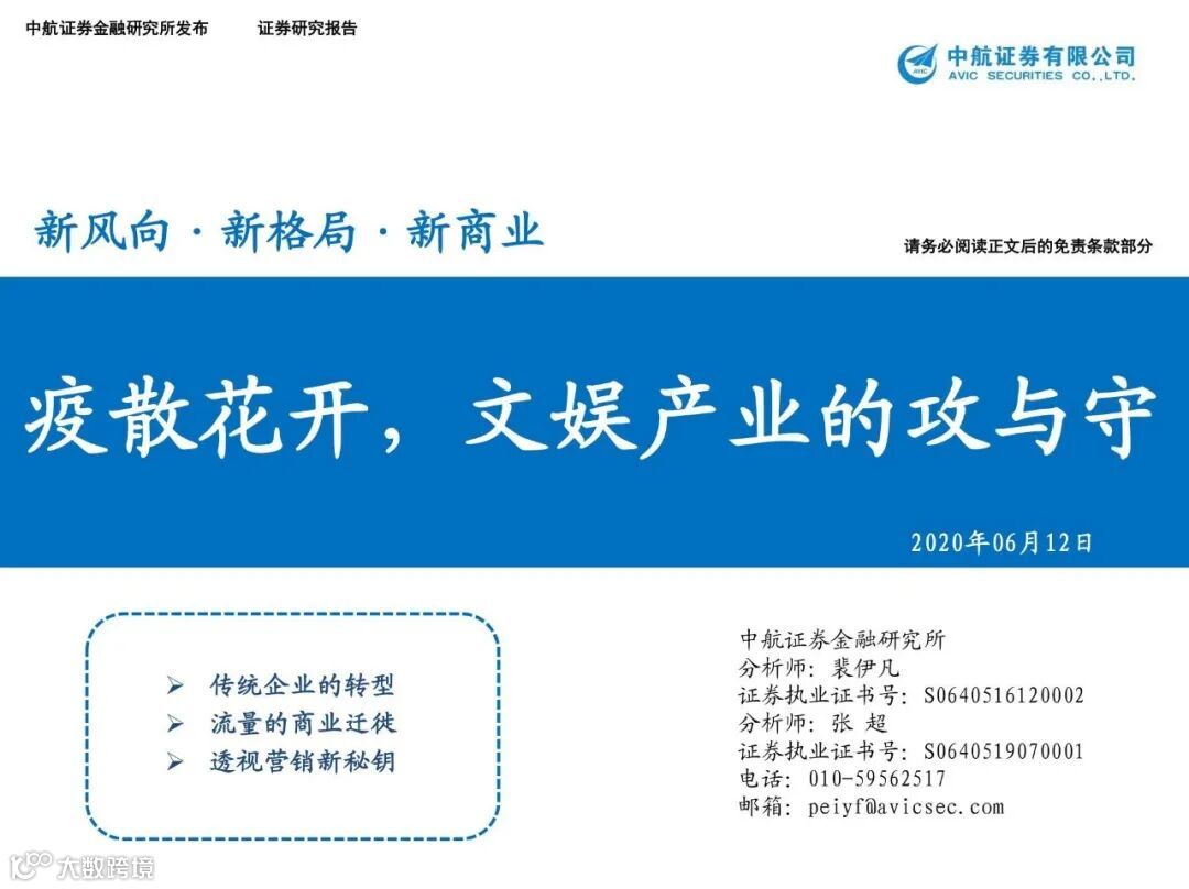 证券研究报告名称:花开疫散,文娱产业的攻与守