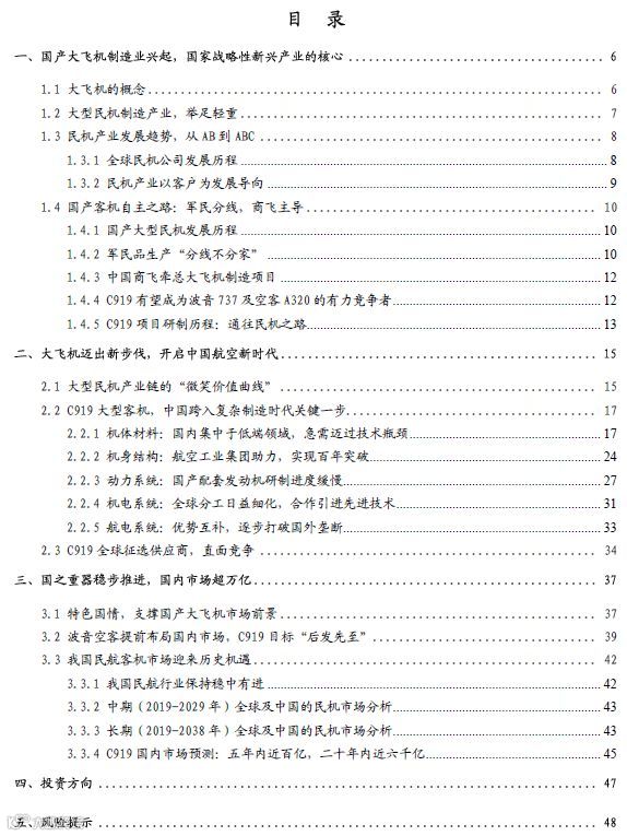 本文主要针对民用客机,重点分析民机C919相关产业,并对其相关市场进行测算。