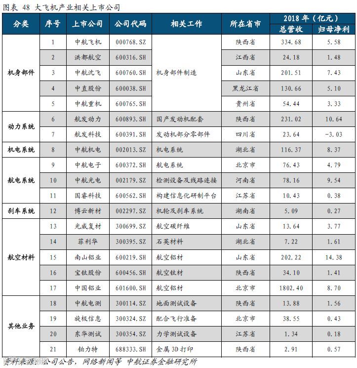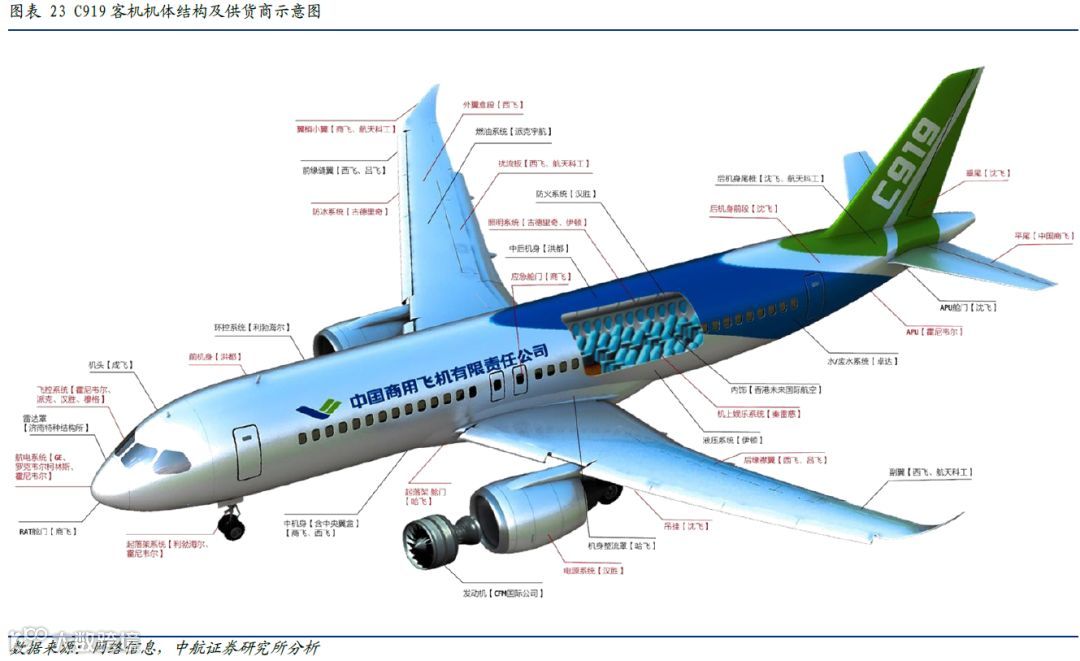 C919大飞机产业链很广,涉及多个上市公司,我们根据制造环节,将主要相关上市公司梳理如下。