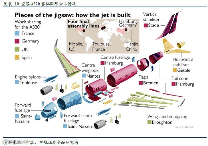 ① 全球1/4的空客飞机安装了中国生产的部件,如机翼部件、尾翼、客舱门和维修工具;波音公司也有大量部件在中国生产;