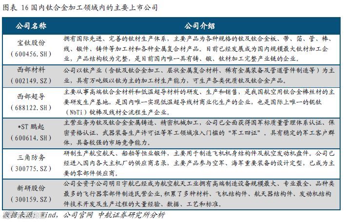 ② 发动机系统以航发集团为主,例如中国航发商发公司、西航公司、北京航空材料研究院等。随着两机专项持续推进和逐步落地,国产代替迎来历史机遇期,产业链各环节市场空间广阔;