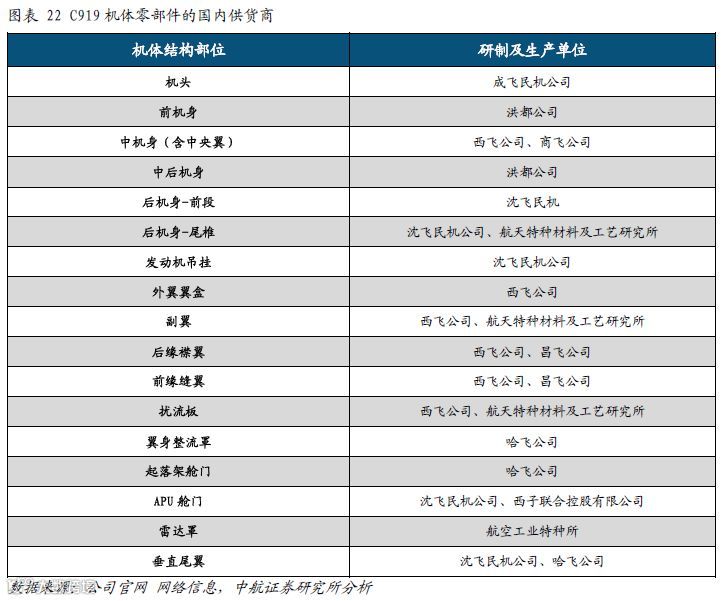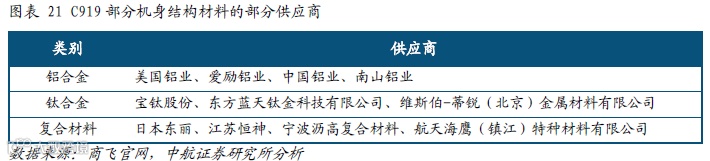 ① 机体结构目前仍以航空工业主机厂为主,中短期受益相对最直接。例如,中航飞机承担中机身(含中央翼)和副翼等部件的研制,而且联营的西飞民机、沈飞民机和成都民机公司分别承担着机身、发动机吊挂、机头等部件的生产;