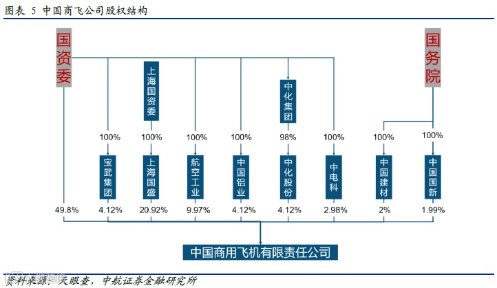 中国商用飞机有限责任公司,以下简称“中国商飞”,于2008年5月11日在上海挂牌成立。目前,公司的注册资本501.01亿元,其中,国资委认缴出资249.50亿元为第一大股东,持股49.80%;上海市政府通过国盛集团认缴出资104.79亿元,持股20.92%;航空工业、宝钢、中铝、中化、中电科、中建材、中国国新等央企持有不同比例的股份。