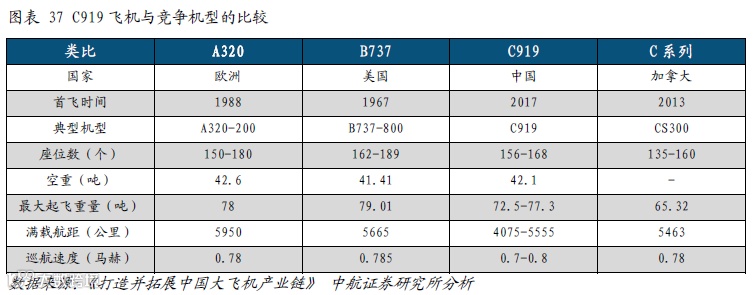 ⑥ 飞行性能:C919的起飞重量、航程和载客量均为最低。