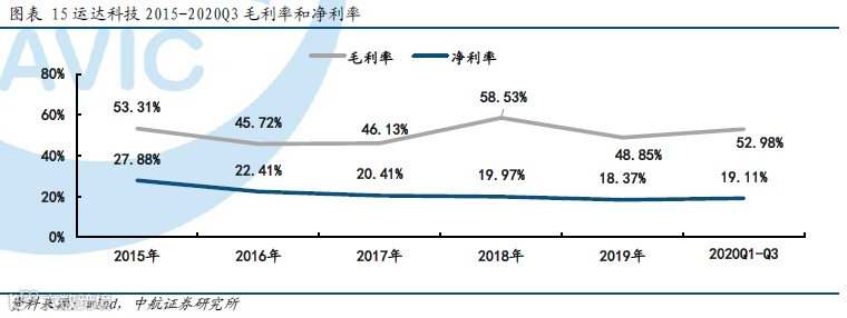 经营管理方面,公司通过控股子公司开展日常经营活动,持续性的股权激励是营业收入和净利润逐年增长的有力支持。同时,公司研发投入较大,研发费率高且逐年攀升,2020年Q3研发费用占营业收入比例达到15.95%。公司毛利率(2020Q3 52.98%)和净利率(2020Q3 19.11%)水平较高,处于同行业较高水平。
