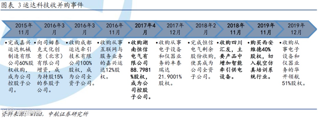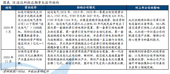 可以看出,公司倾向于通过收并购巩固和强化业务板块实力,完善轨道交通产业链布局,增强核心竞争力和盈利能力。2020年5月22日,公司发布公告,拟以发行股份及支付现金的方式购买运达电气100.00%股权,延伸公司在铁路牵引供电系统领域业务,同时与自身牵引供电设备业务形成协同。截至目前,标的公司的加期审计和评估工作正在进行中。2020年12月2日,公司发布公告,拟以支付现金方式受让控股子公司运达华开其他股东合计持有标的公司49%股权。交易完成后,运达电气和运达华开将成为运达科技的全资子公司。