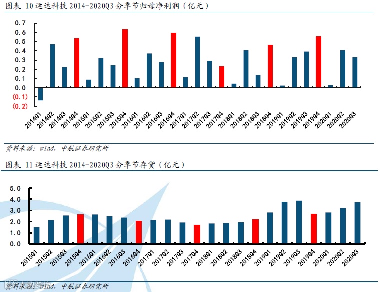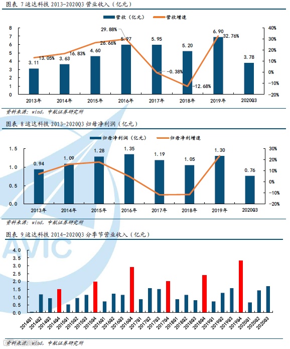 公司营收和归母净利稳步增长,且具有季节性特征: 2013年至2019年,公司营业收入复合增长率为14.21%,归母净利复合增长率为5.57%。2019年,公司实现营收6.9亿元(+32.76%),归母净利1.3亿元(+23.62%)。由于公司客户每年采购和确认订单的时间集中于第四季度,公司的营业收入和归母净利具有较为明显的季节性。通常,第四季度公司的营业收入和归母净利高于其他三个季度。与此同时,公司存货的季节性并不显著,说明公司在获取订单和安排生产方面具有较好的连续性。