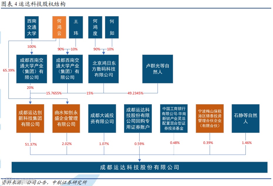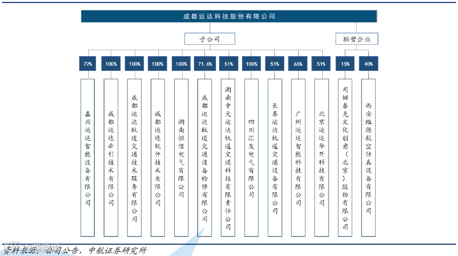 股本结构:截止2020年三季报,公司控股股东为持股51.37%的运达集团,实际控制人为何鸿云先生。运达集团源自1992年创立的西南交通大学校办企业,2001年改制为有限责任制公司,2015年9月名称由“成都运达创新科技有限公司”变更为“成都运达创新科技集团有限公司”,具有深厚的轨道交通行业背景。集团以项目投资为主营业务,实际生产经营活动由以运达科技为首的子公司展开。目前,运达集团旗下拥有包含运达科技在内的十余家子公司。