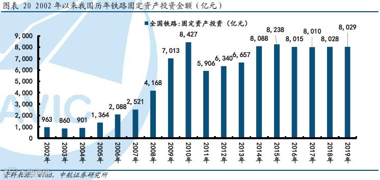 我国铁路投资在未来相当长的时间内仍将保持一定强度。21世纪以来,我国铁路固定资产投资在2010年达到8400多亿元的高峰,此后经过几年下滑调整,到2014年趋于稳定。2014年到2019年间,每年的固定资产投资基本稳定在8000亿元左右。受疫情影响和拉动经济的考虑,国铁集团2020年固定资产投资将超8000亿元。2020年7月5日,国铁集团发布消息称上半年全国铁路固定资产投资完成3258亿元,同比增长1.2%;其中基建投资完成2451亿元,同比增3.7%。铁路投资金额不仅与铁路新建里程,还与机车更新和相关基础设施维护升级相关。我国高铁多为2008年之后修建,预计未来十五年,在维护、更新和升级方面的支出超过此前十年。